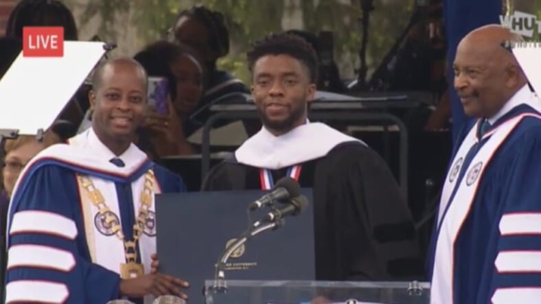 “The light of new realization shines on you today,” Boseman said. “Howard’s legacy is not wrapped up in the money you will make, but the challenges you choose to confront.”