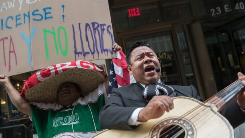 “Without the Latinos there wouldn’t be a hospitality industry [in New York.] How dare this mother f—ker. How dare he? He should be disbarred,” added protester Stratis Morfogen.