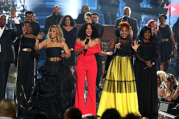 When Tracee Ellis Ross opened the annual awards show, she donned a sequined bodysuit by Nicolas Jebran underneath a Dapper Dan cape by Gucci and paired it with Air Force 1s.