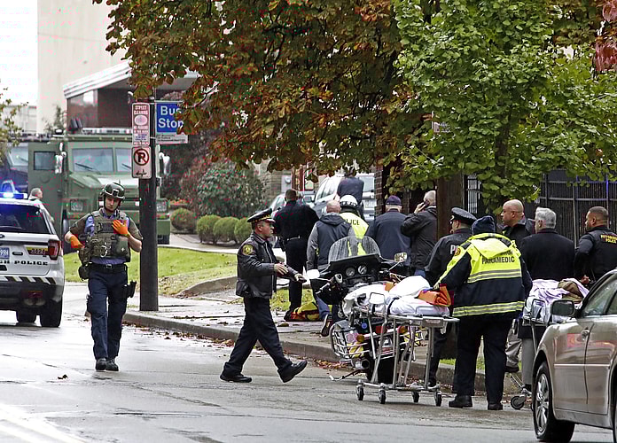 Authorities say the gunman opened fire during a baby naming ceremony Saturday morning at the Tree of Life Congregation in Pittsburgh’s Squirrel Hill neighborhood. Six people were wounded, including six police officers.