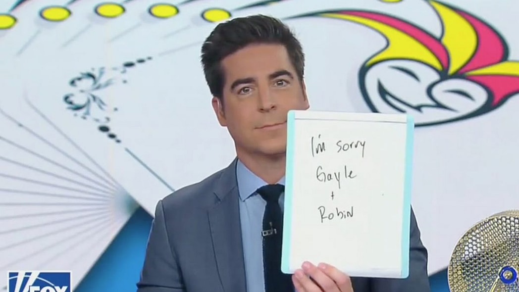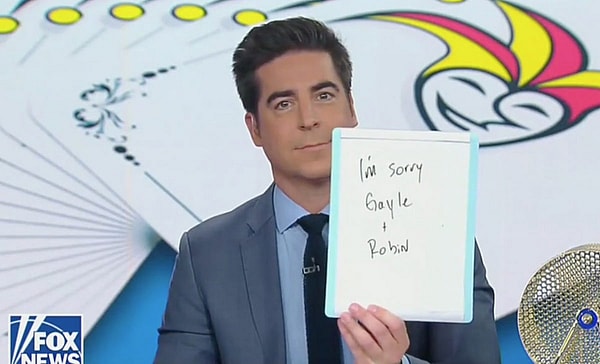 Later in the show a sheepish Watters apologized yet again with a note on a whiteboard that read, “I’m sorry Gayle + Robin.”