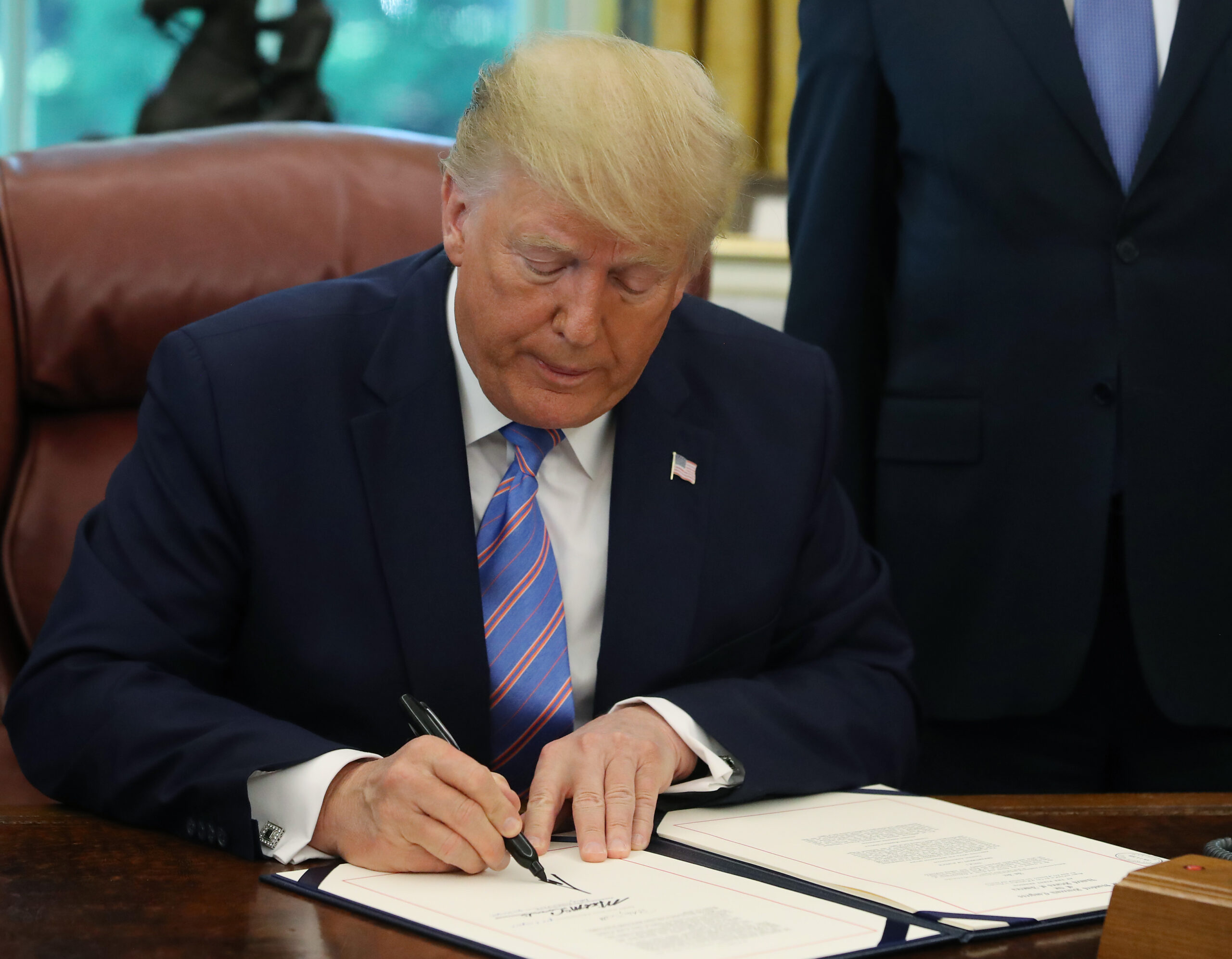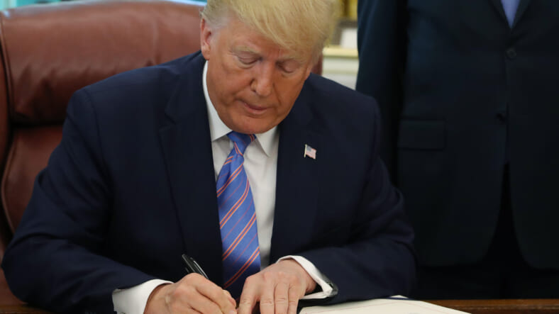 “This will deliver urgently needed relief,” Trump said as he signed the bill in the Oval Office, flanked only by Republican lawmakers. He thanked members of both parties for putting Americans “first.”