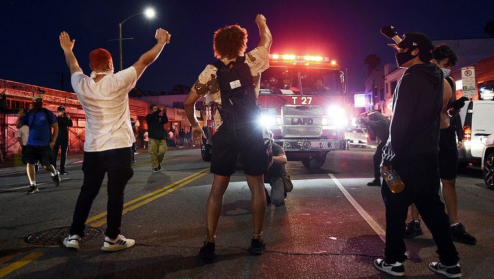 People set fire to squad cars, threw bottles at officers and busted windows of storefronts, carrying away TVs and other items even as some protesters urged them to stop. In Indianapolis, multiple shootings were reported, including one that left a person dead amid the protests, adding to deaths in Detroit and Minneapolis in recent days.