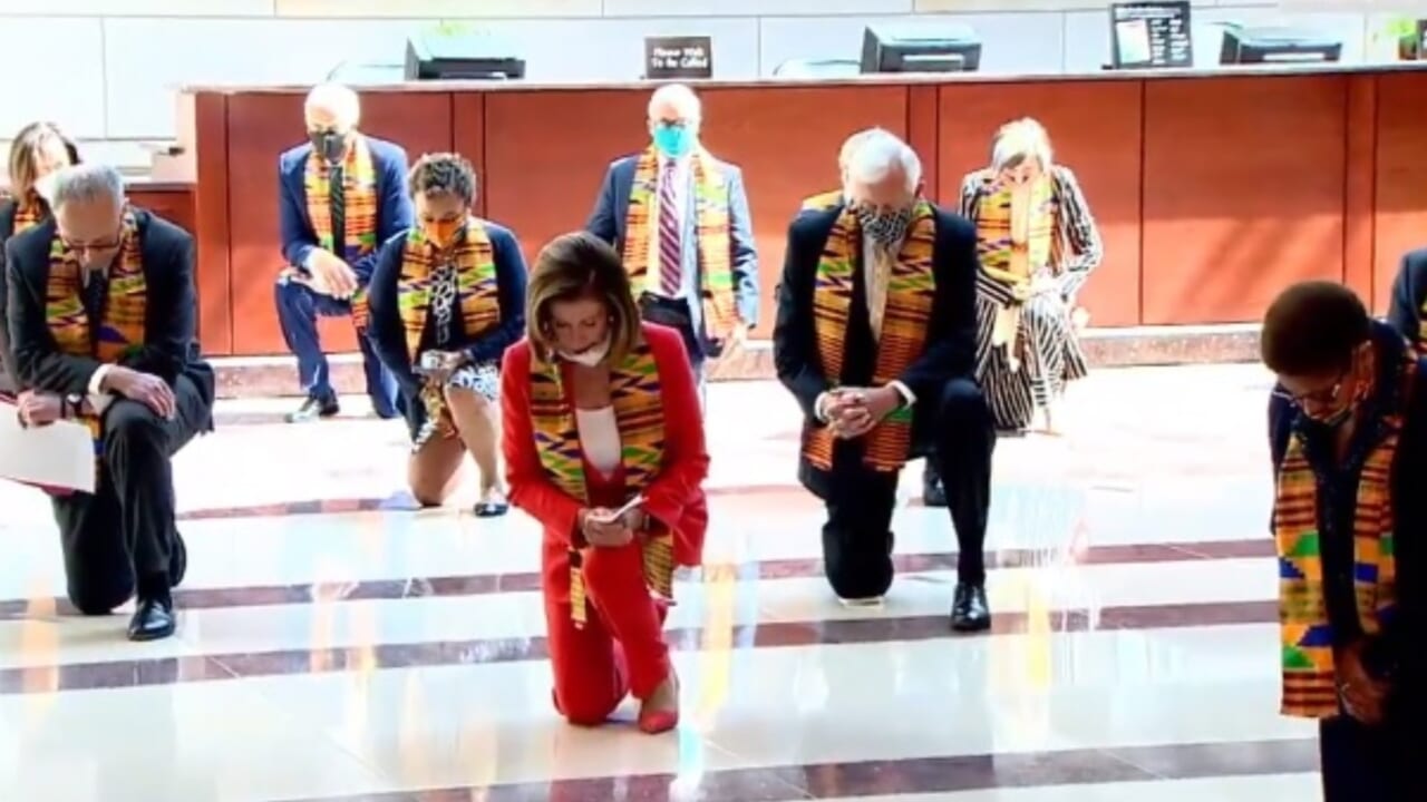 Congressional Democrats take a knee as they observe a nearly nine minute moment of silence for George Floyd at Emancipation Hall at the U.S. Capitol. https://t.co/JnqDlzMFDq pic.twitter.com/8CBdgtLUjz