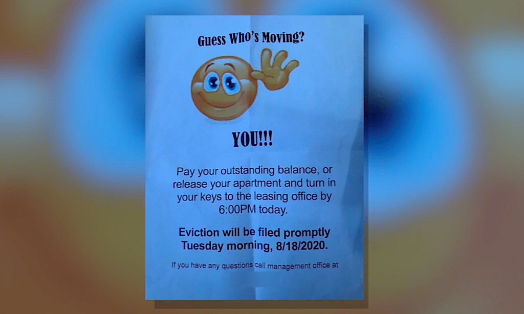 “So y’all think it’s funny to antagonize the person that’s going through financial hardship with putting an emoji stating, ‘Guess who’s moving today?’ There was nothing funny about that,” Lee said about the notice.