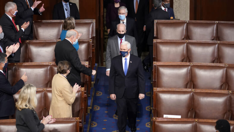 Beginning at 1 p.m., Pence began to open the certificates of the electoral votes from each state and present them to the appointed “tellers” from the House and Senate in alphabetical order. At the end of the count, Pence, seated on the House of Representatives’ rostrum, has the task of announcing who has won the majority of votes for both president and vice president.