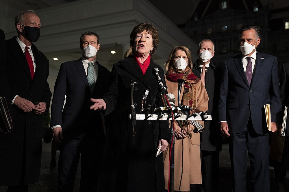 Besides Collins and Cassidy, the GOP senators meeting with Biden were Lisa Murkowski of Alaska, Mitt Romney of Utah, Shelley Moore Capito of West Virginia, Todd Young of Indiana, Jerry Moran of Kansas, Rob Portman of Ohio, Thom Tillis of North Carolina. Sen. Mike Rounds of South Dakota joined by phone.