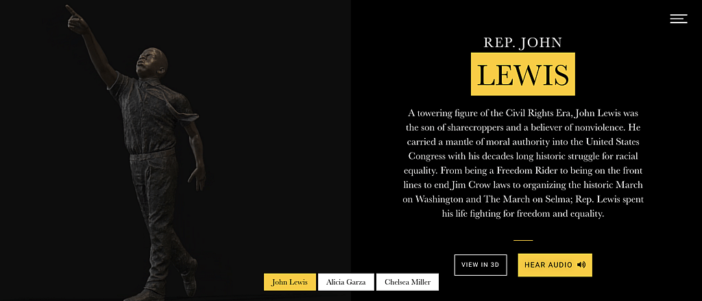 The initiative is called The Pedestal Project and launched earlier this month with three incredible racial justice leaders to honor and virtually place on the empty pedestals where the likes of Robert E. Lee and Stonewall Jackson once stood: John Lewis, Civil Rights leader and former United States Congressman, Alicia Garza, Co-founder of the Black Lives Matter movement and principal at Black Futures Lab, and Chelsea Miller, Co-founder of Freedom March NYC.