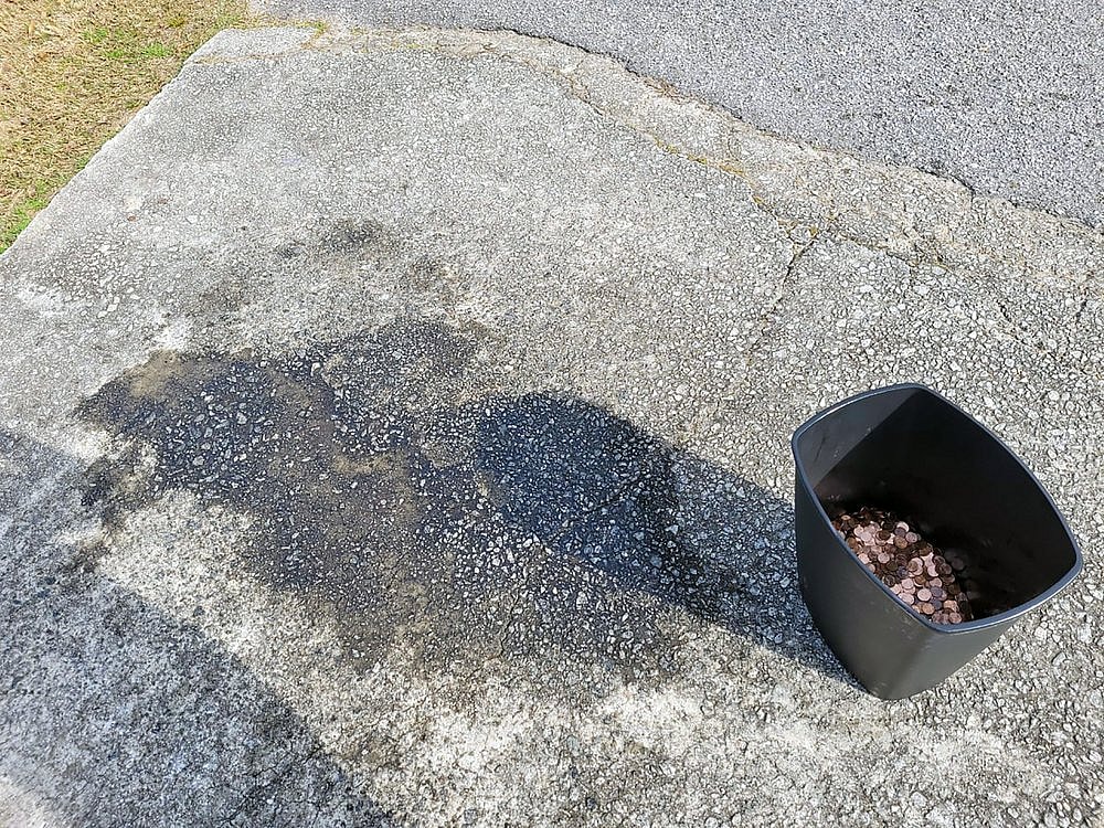 In mid-March, Flaten said as he left his house with his girlfriend he noticed the pile at the end of his driveway. He said the pennies were covered with some sort of oily substance.
