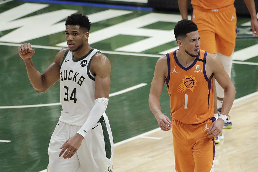 Phoenix led by two with 2 1/2 minutes left before Middleton made the next two baskets to give Milwaukee a 101-99 edge with 1:28 to play. It appeared the Suns would tie it with a lob pass to center Deandre Ayton but Antetokounmpo swooped in to block it, flexing his muscles to the crowd behind the basket as the Bucks broke the other way on the fast break.