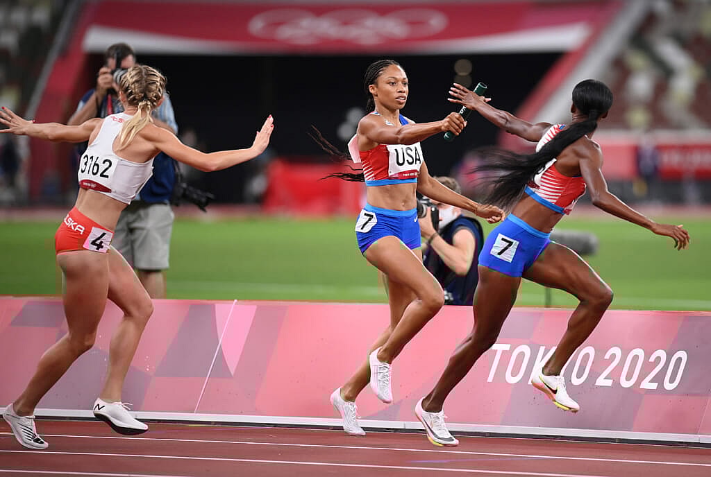 Sydney McLaughlin, the 400-meter hurdles world-record holder, celebrated her 22nd birthday by running the opening lap. She handed to Felix, who handed to another hurdler, Dalilah Muhammad, who is 31.