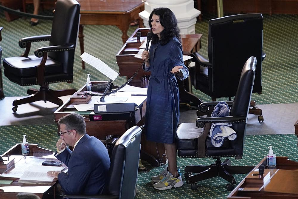 Alvarado wore running shoes on the Senate floor — much like former legislator Wendy Davis, known for her lengthy filibuster in 2013 of an anti-abortion bill.