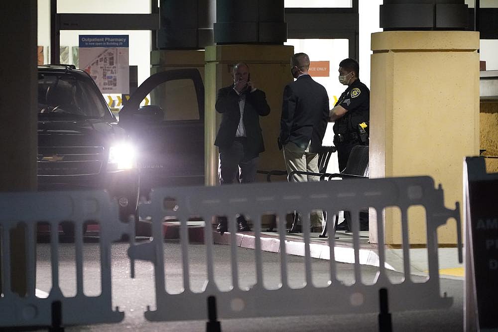 Hillary Clinton has been with her husband at the hospital southeast of Los Angeles. She returned Saturday with her daughter Chelsea Clinton around 8 a.m. Saturday in an SUV accompanied by secret service agents.