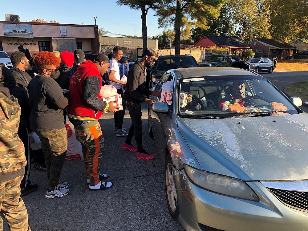 Undaunted, members of his music label, Paper Route Empire, along with church volunteers and community activists, distributed dozens of turkeys, stuffing mix and cranberry sauce — and said “happy Thanksgiving” — to people driving past the church.
