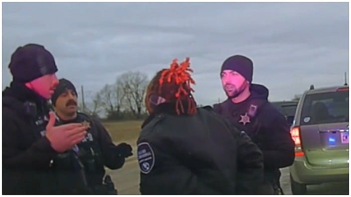 One officer is heard on dashcam saying, “It’s not harassment because … that hotel is high with drug traffic. You go that early in the morning, okay? Your ID returns out Alton. You’re from Belleville. And then you leave after you went there. The car was off, then the car was on.”