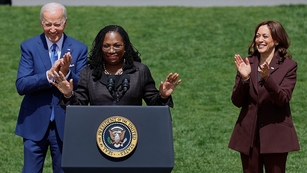 President Joe Biden, who officially fulfilled his campaign promise as a candidate to install a Black woman justice to the high court, praised Jackson’s performance during an intense confirmation hearing. The president called it a day of “hope and progress” as Judge Jackson — who will be sworn in as Justice Jackson this fall — along with Vice President Harris, stood beside him on a sunny Friday afternoon.