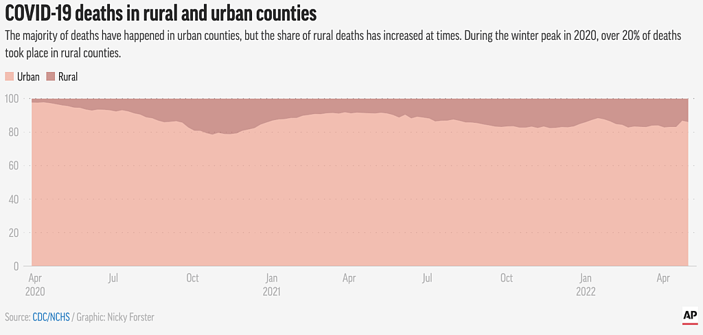 Americans living in rural areas have been less likely to get vaccinated than city dwellers, more likely to be infected and more likely to die.