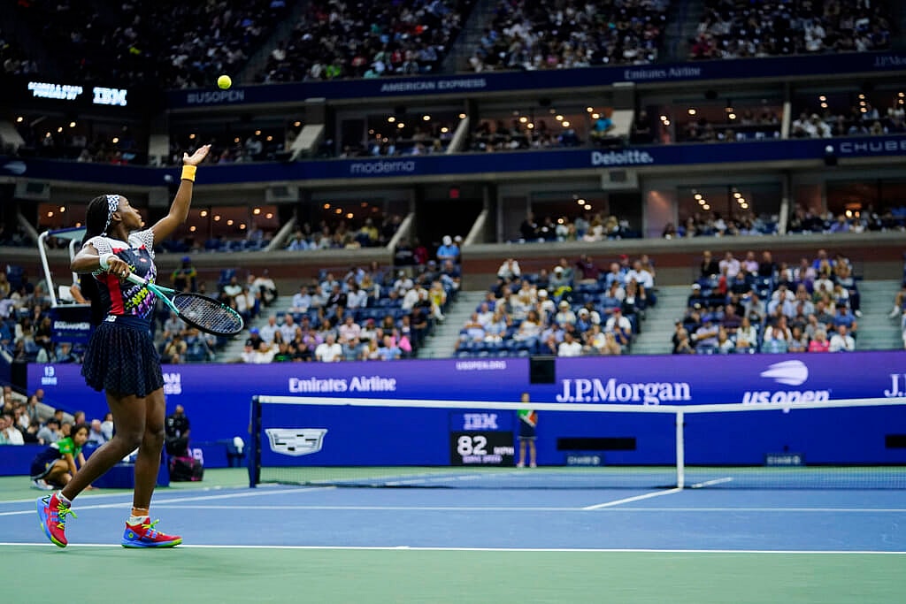 Both are big servers: Gauff hit the fastest by a woman in the tournament this year, at 128 mph; Garcia leads the WTA in aces in 2022. Each delivered one at 117 mph in her opening service game.