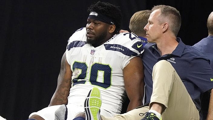 NEW ORLEANS (AP) — Seattle running back Rashaad Penny left the Superdome field sitting on cart with his left shoe off and a grim expression on his face, aware that his season could be in jeopardy.