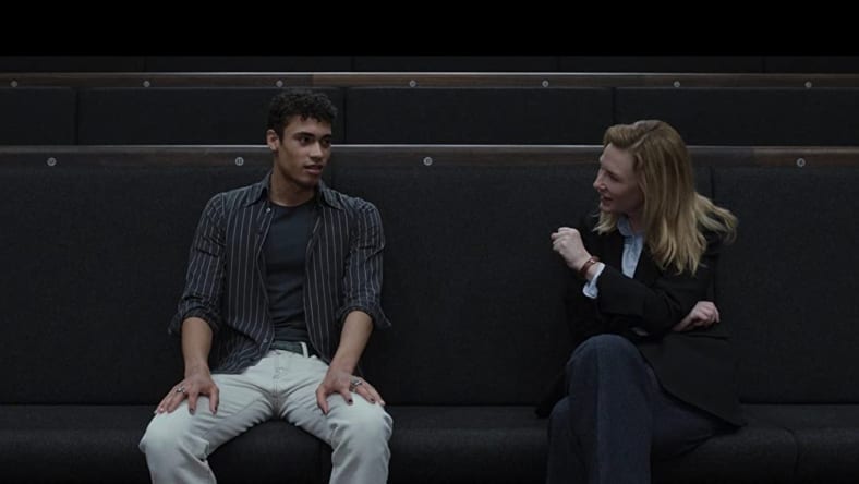 Early on in the film, Tár is at Julliard, the legendary music school, teaching a class on conducting, and things go off the rails. Tár’s foil in this scene is Max (played by newcomer Zethpan Smith-Gneist), a conducting student who’s Black (or perhaps biracial), tall, shy and, yet, very sure of himself. Max’s leg shakes throughout the scene because he’s filled with nervous energy being so close to this musical giant, but his views are unshakeable no matter how hard Tár tries to change them. Max, who calls himself BIPOC and pangender, is either one of the last of the millennials or one of the oldest of the zoomers, and some may feel like he’s close to being a parody of woke culture, but to me, he’s just one of the youngs who are out to remake the world in the way they think it should be, and standing strong against the intellectual onslaught of one of the olds — Tár, a white Gen X lesbian.