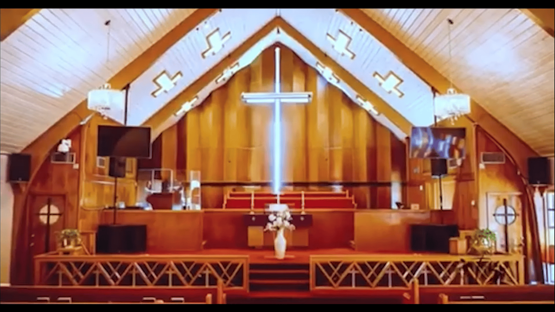 John S. Chase designed the current structure in 1957, coming up with a one-of-a-kind design that featured stained glass windows and a unique profile with a cross-gable roof. Today, the church has 225 members; about 90 attend Sunday services each week.