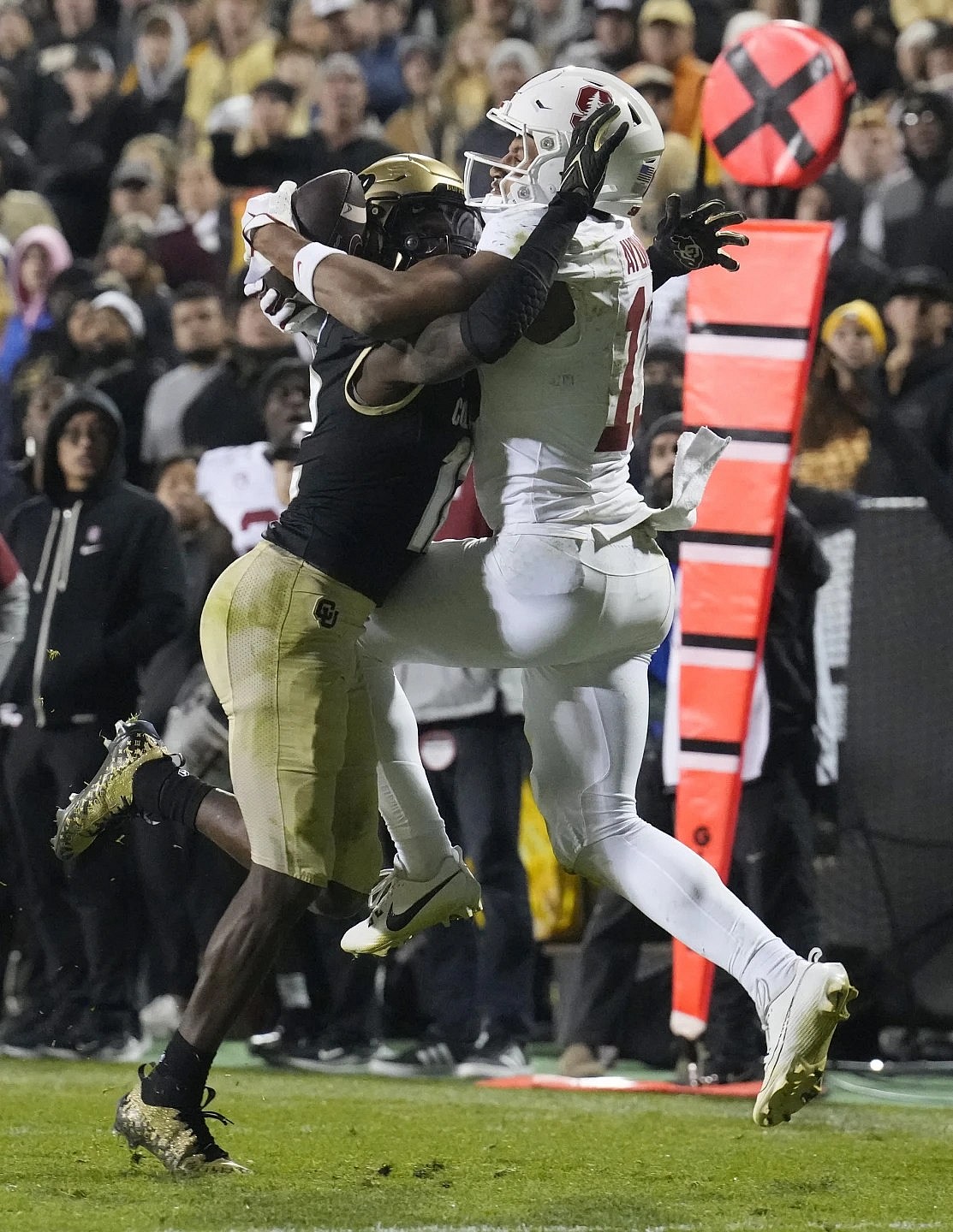 But he also was burned by Cardinal star receiver Elic Ayomanor, whose school-record 294-yard performance was highlighted by a 30-yard touchdown catch in the first overtime. The stout sophomore corralled Ashton Daniels’ throw on the back of Hunter’s helmet, held on as their momentum took both into the end zone and lifted the ball over Hunter’s head just as he backpedaled in for the score.