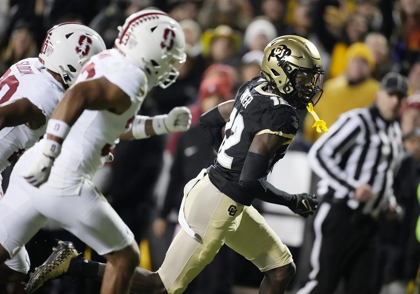 He was slated to return Oct. 28 against UCLA following the Buffaloes’ bye next week, but he received medical clearance to return to practice earlier this week. When the Buffaloes started out on defense against Stanford (2-4, 1-3), Hunter received a big hug from his coach as he trotted out to play cornerback.