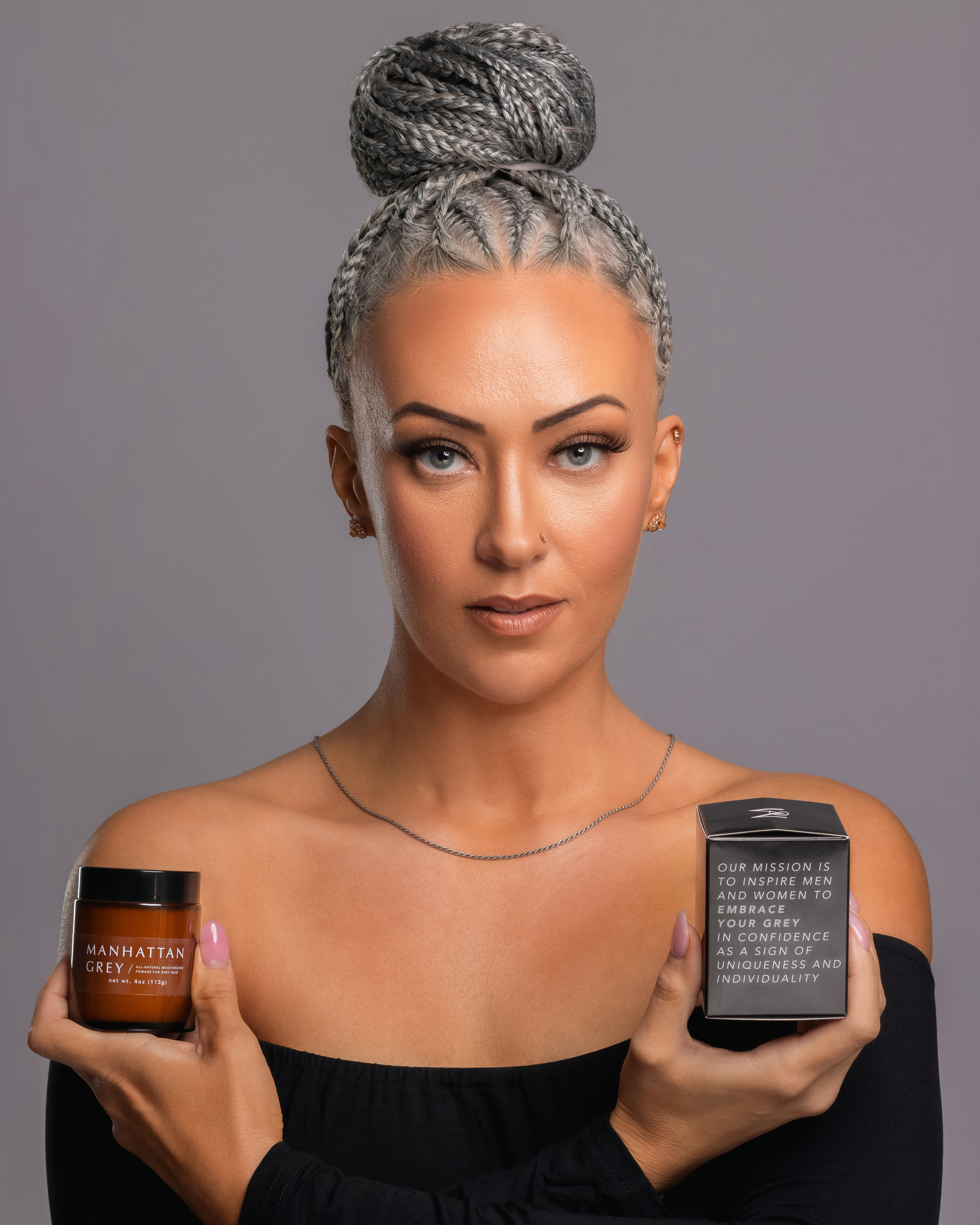 Abner, 37, started graying when he was around 20 years old. “Men can kind of weave their way through the gray-hair narrative a little bit more seamlessly,” he said, noting men are often perceived as “distinguished” rather than “old.” Abner originally conceived of Manhattan Grey in 2019 as a product for Black men, but after considerable demand from Black women, he said about 70% of his clientele is now female.