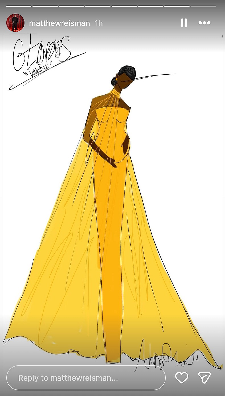 At tonight’s awards. Mosaku, 39, is wearing a sunny yellow gown custom-made by Matthew Reisman, who shared the design sketch on his Instagram story.