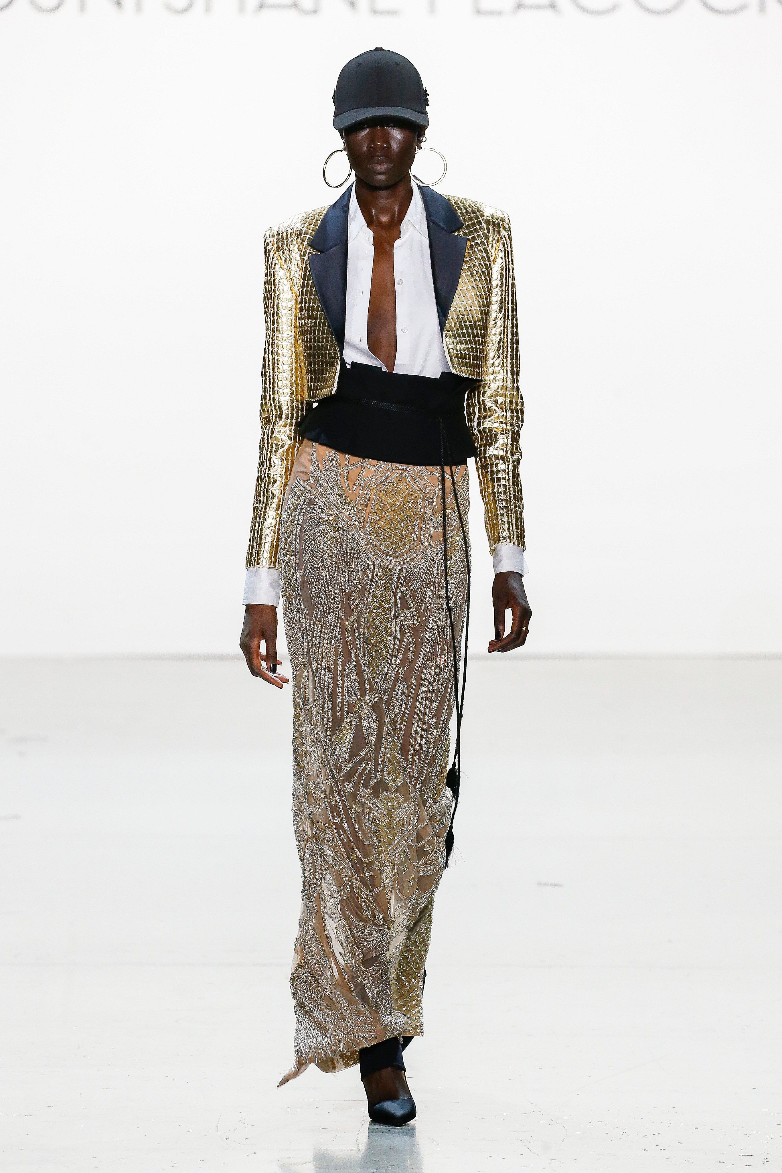 A model walks the runway at the Falguni Shane Peacock SS24 “2.O” collection at Spring Studios. (Photo: Dan Lecca)