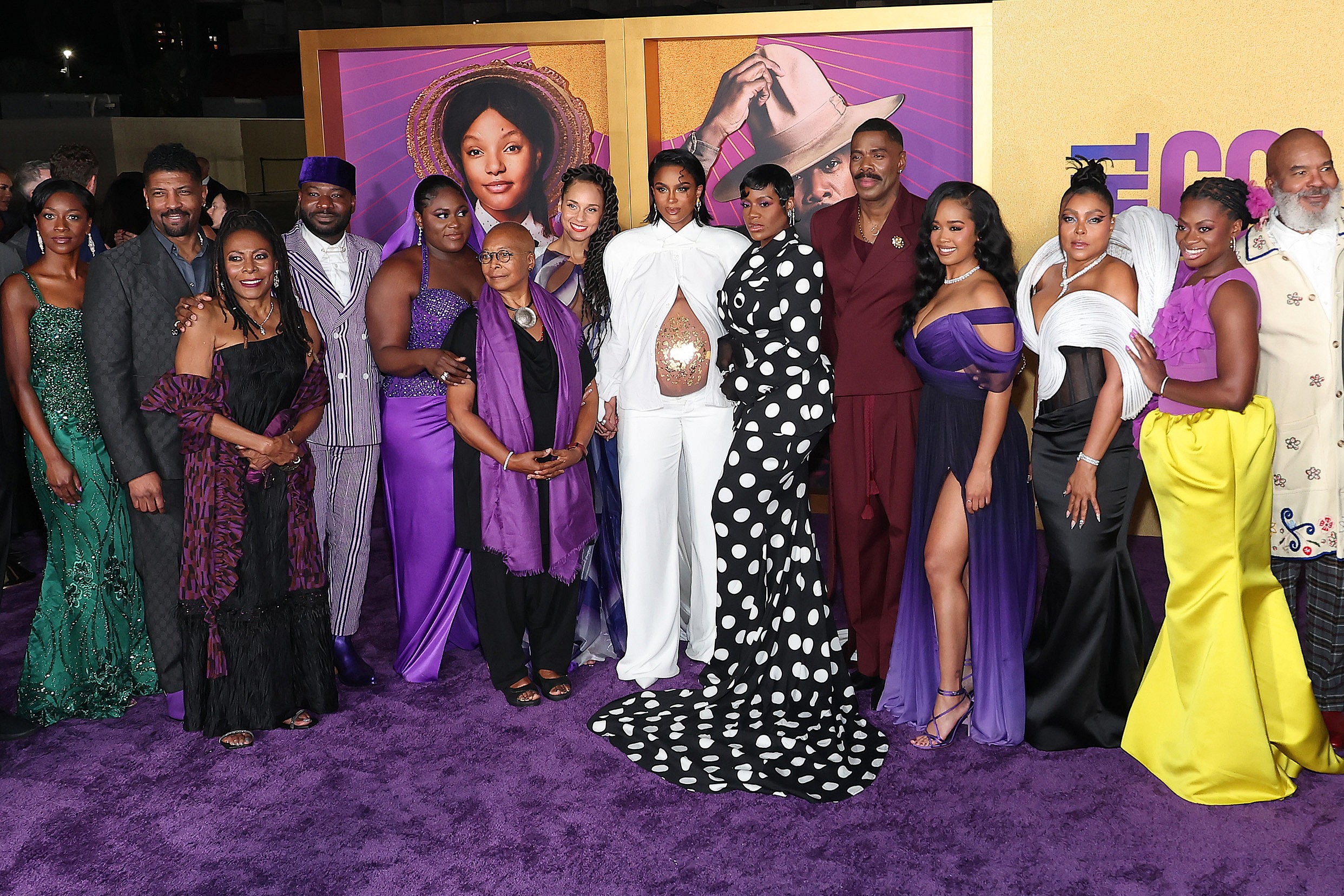 (Left to right) Adetinpo Thomas, Deon Cole, Brenda Russell, Blitz Bazawule, Danielle Brooks, Alice Walker, Alicia Keys, Ciara and Fantasia Barrino-Taylor, Colman Domingo, Gabriella Wilson aka H.E.R., Taraji P. Henson, Phylicia Pearl Mpasi, and David Alan Grier attend the World Premiere of Warner Bros.’ “The Color Purple” at Academy Museum of Motion Pictures on Dec. 06, 2023, in Los Angeles, California. (Photo by Leon Bennett/Getty Images)