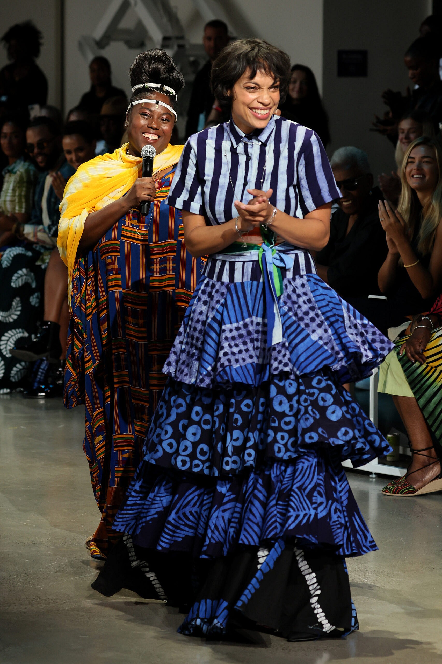 NEW YORK, NEW YORK – SEPTEMBER 11: Abrima Erwiah and Rosario Dawson, co-founders of Studio 189 walk the runway for the Studio 189 fashion show during September 2022 New York Fashion Week: The Shows at Gallery at Spring Studios on September 11, 2022 in New York City. (Photo by Dia Dipasupil/Getty Images for NYFW: The Shows)