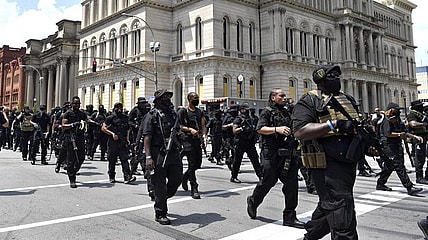An armed group of mostly Black protesters who organized peaceful demonstrations Saturday in Louisville drew counter-protesters from a White militia…