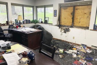 Vandals allegedly struck the Madison, Wisconsin, office on Sunday, leaving a spray-painted message on the exterior; no one was hurt.